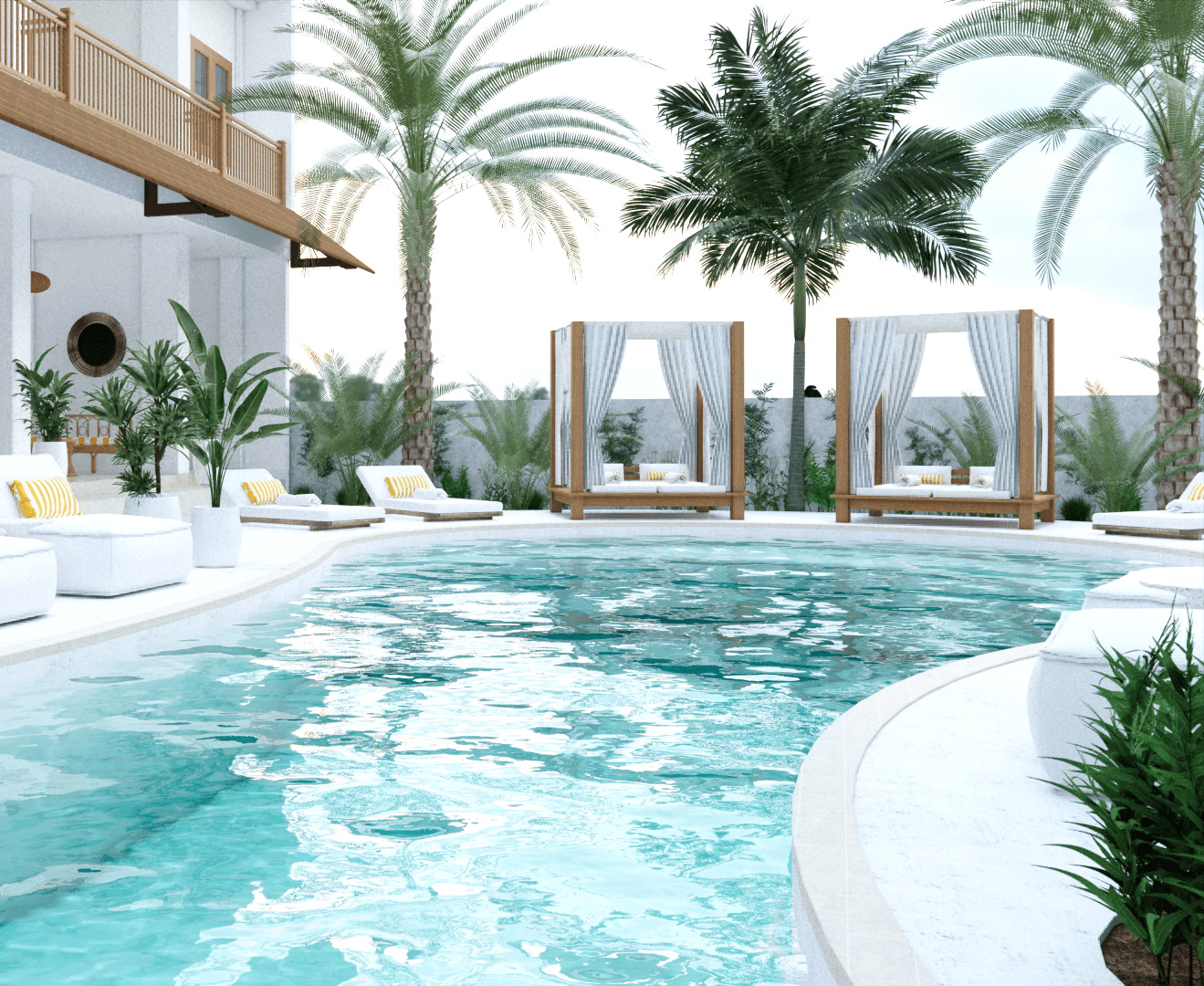 - Open living pool-side lounge with free flow coffee, tea and iced cucumber and lime water, plus complimentary full-day drink and healthy snack menu
