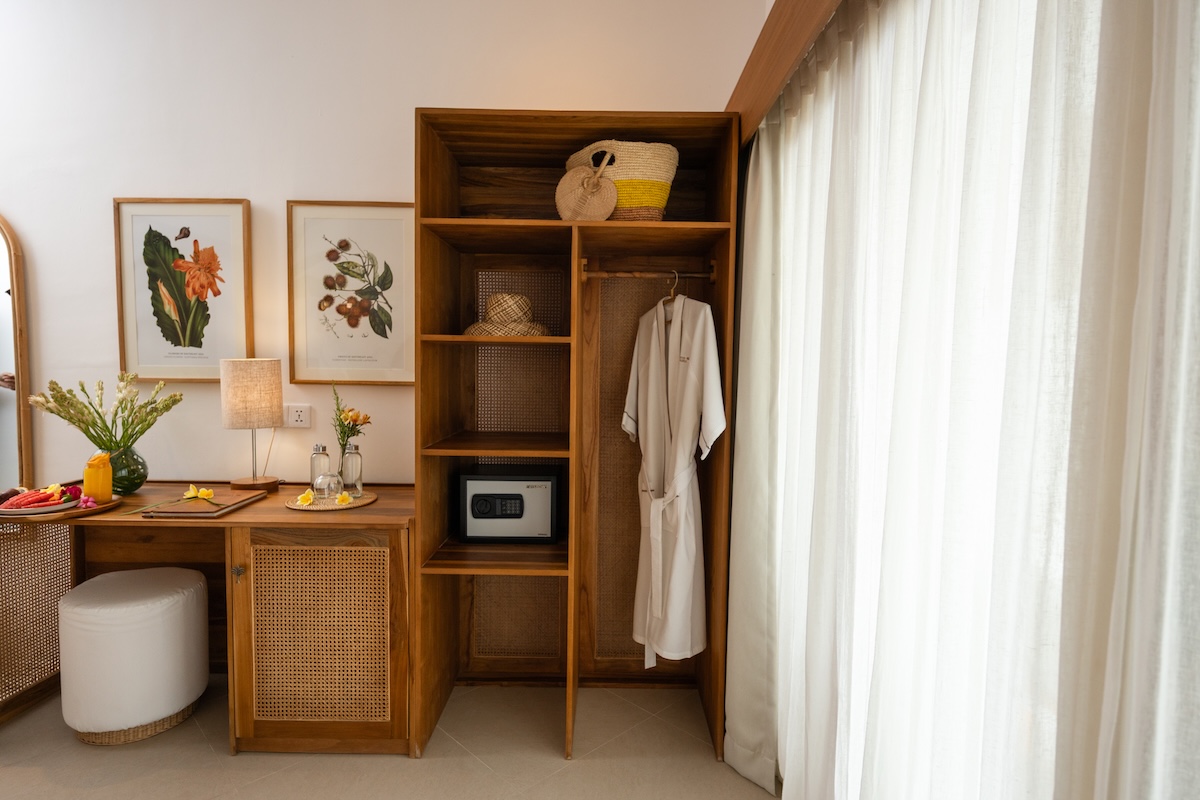 Spacious, air-conditioned bedrooms feature robes, hairdryers, and locally made vegan aromatherapy essentials for a touch of indulgence and ease.